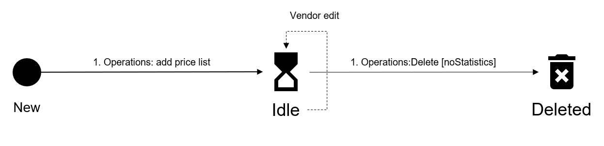 The following diagram shows the possible states for the pricelist object and the transition between these states: