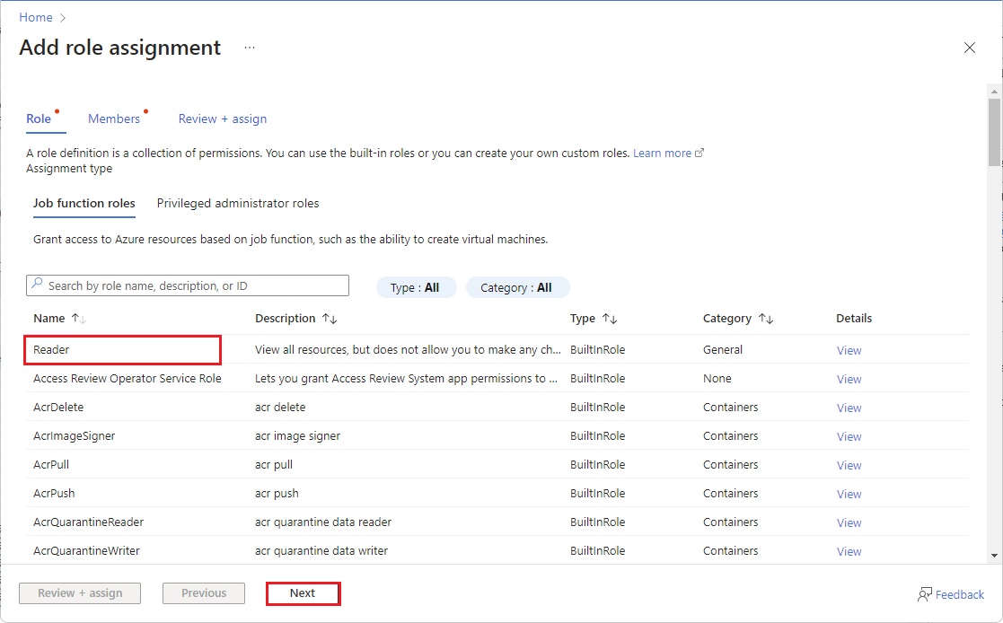 1. On the **Role** tab, select **Reader** as the role and then select **Next**.&#x20;