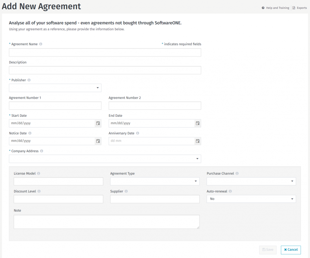 Renewal Manager is not limited to agreements and software purchased through SoftwareONE. The “Add Agreements Manually” option – lets you add agreements to Renewal Manager that have not been purchased through SoftwareONE.
