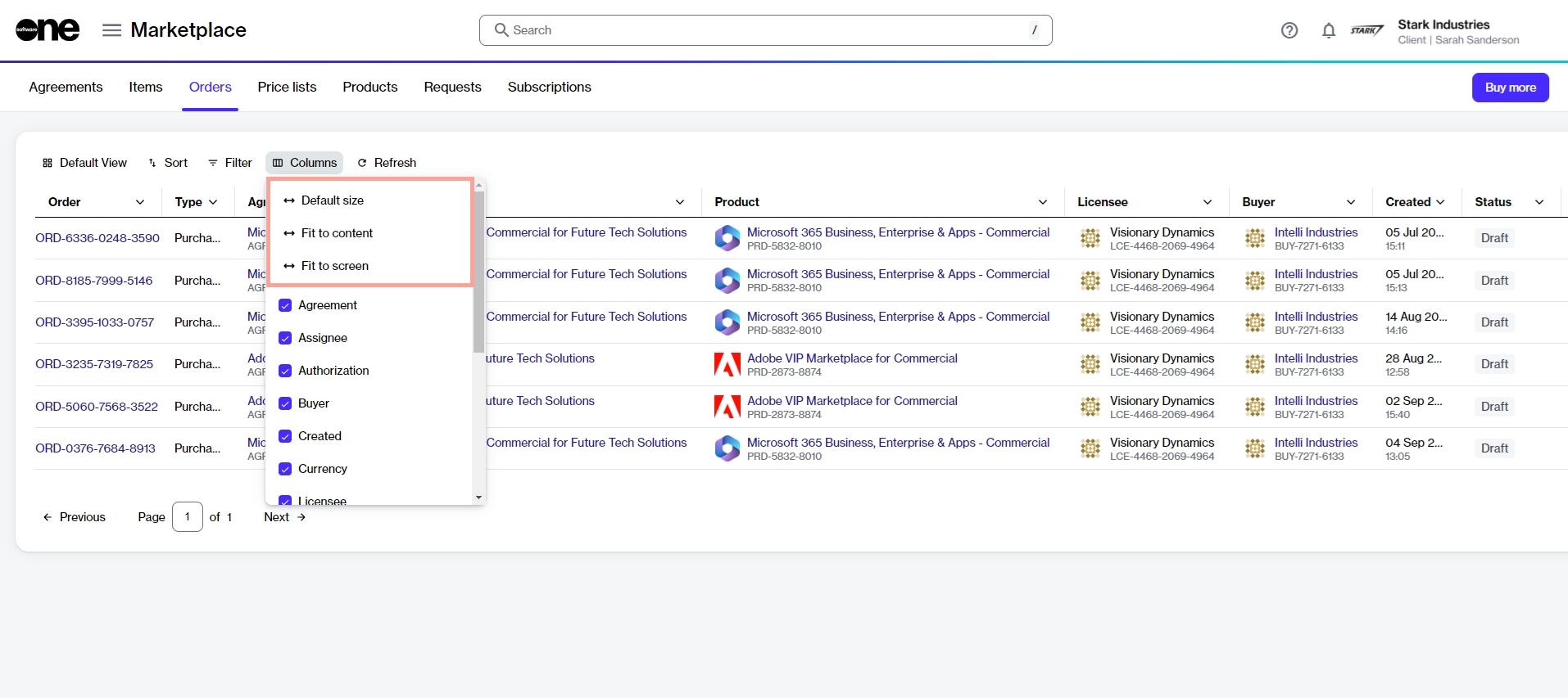 We've added new options to the Columns selector, which is available in the data grids across the platform. These options allow you to adjust the width of the columns and control how the data is displayed on a page.