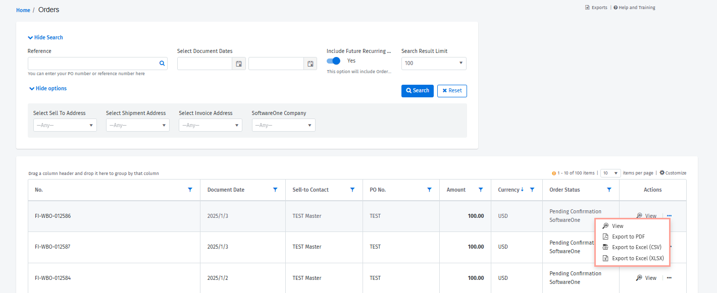 Filtering or sorting orders