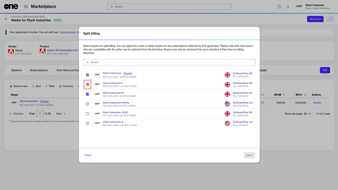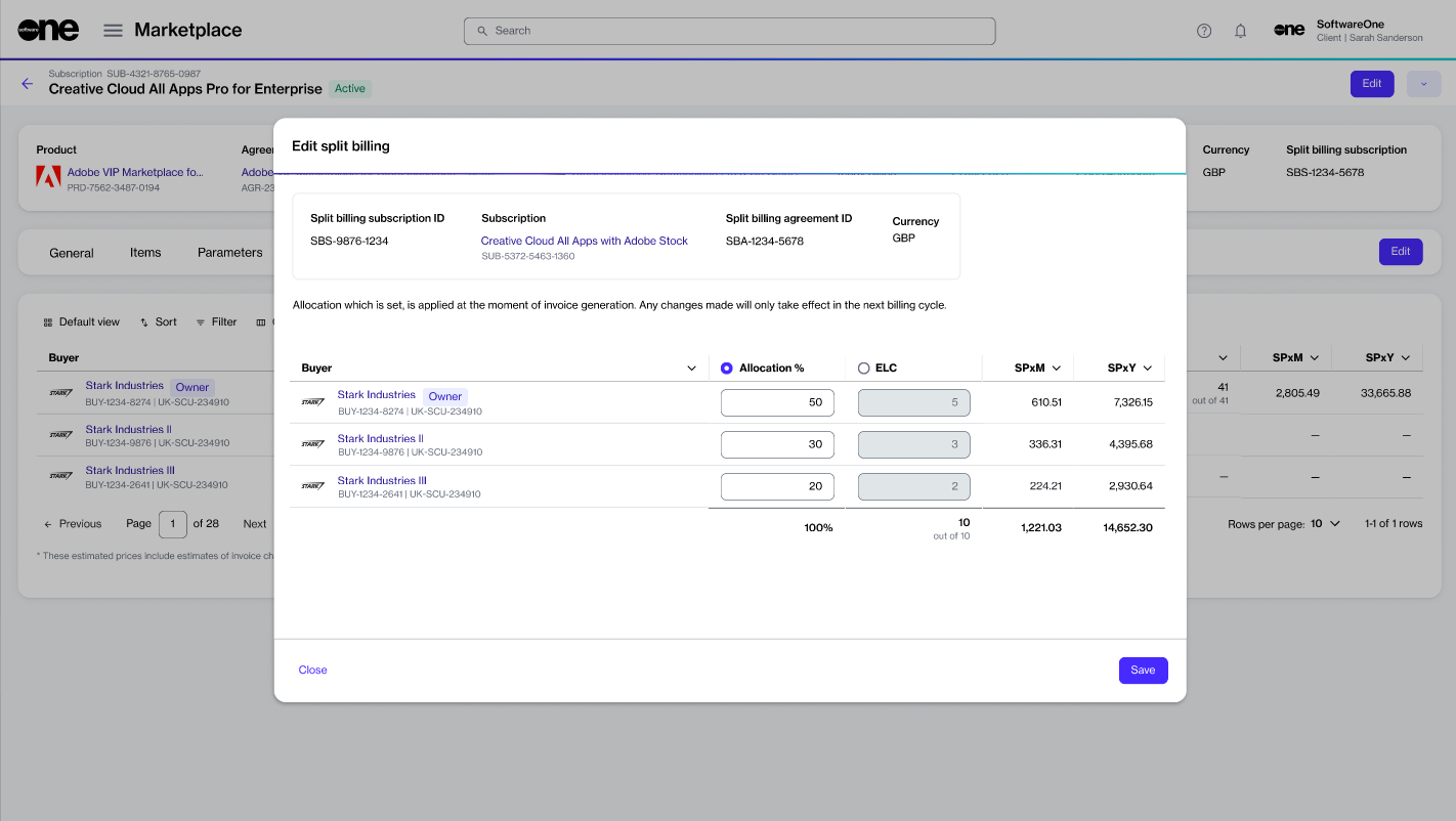 Edit Split Billing
