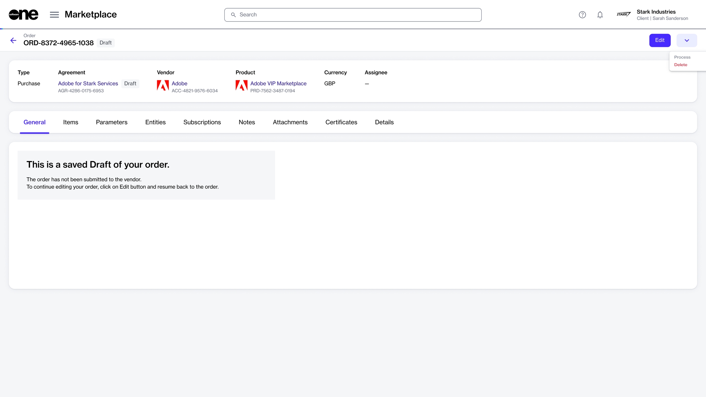 If you saved an order during the ordering process and no longer wish to submit it to the vendor for processing, you can delete it. Deleted orders can't be recovered, but will still be displayed in your list of orders.
