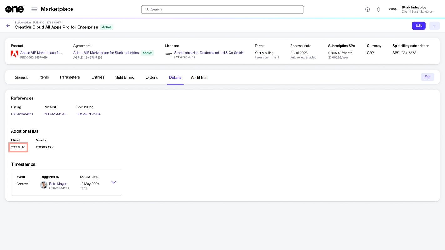 If you want to assign a client ID to a subscription, you can do this from the subscription's details page.