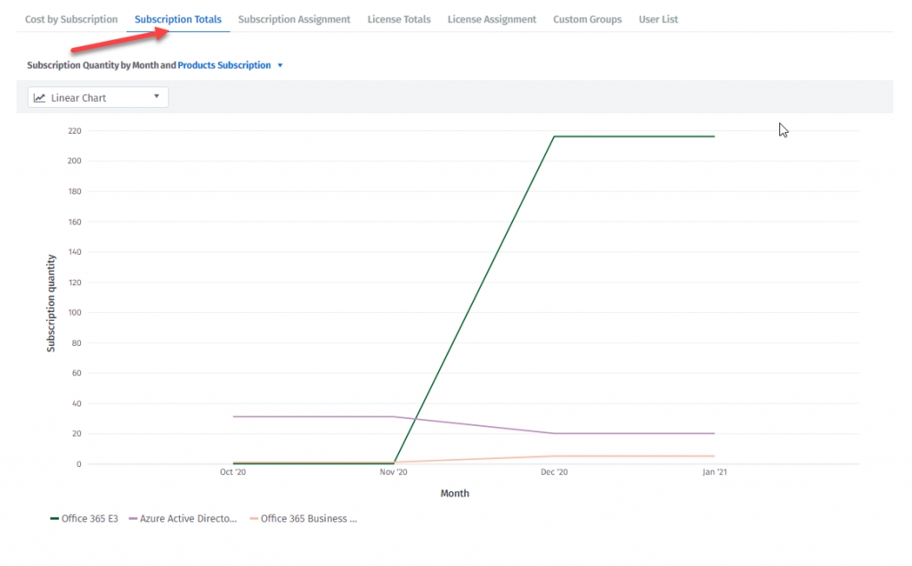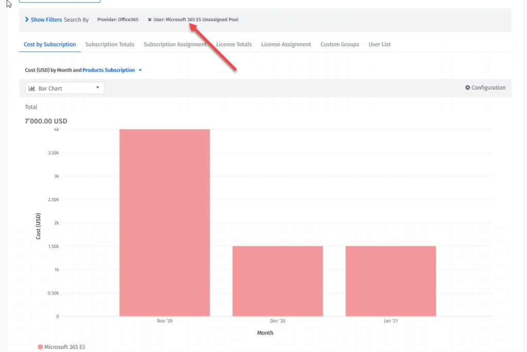You can visualize and analyze your Office 365 EA and Office 365Simple spend.