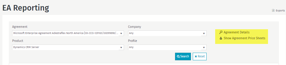 Select your EA Agreement from the drop-down. The following license model agreements are supported: