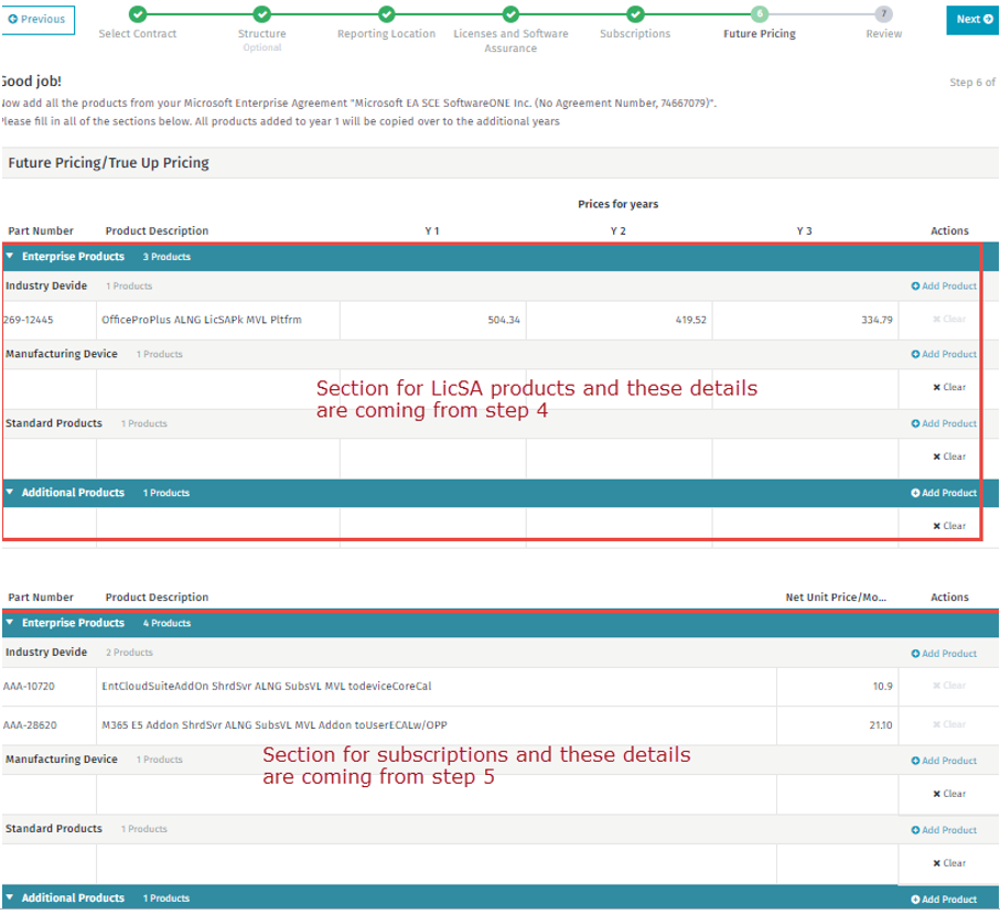 The purpose of this step is to add License and Software Assurance details i.e. product and price details from Customer Price Sheet.