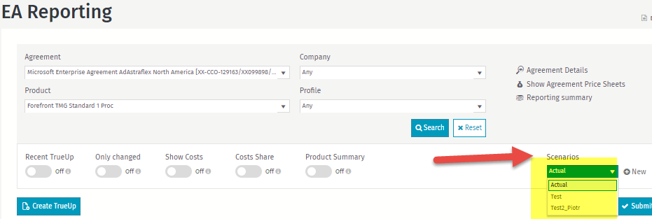 In this scenario, the EA Admin is reporting the TrueUp. First of all the EA Admin needs to look at the header.