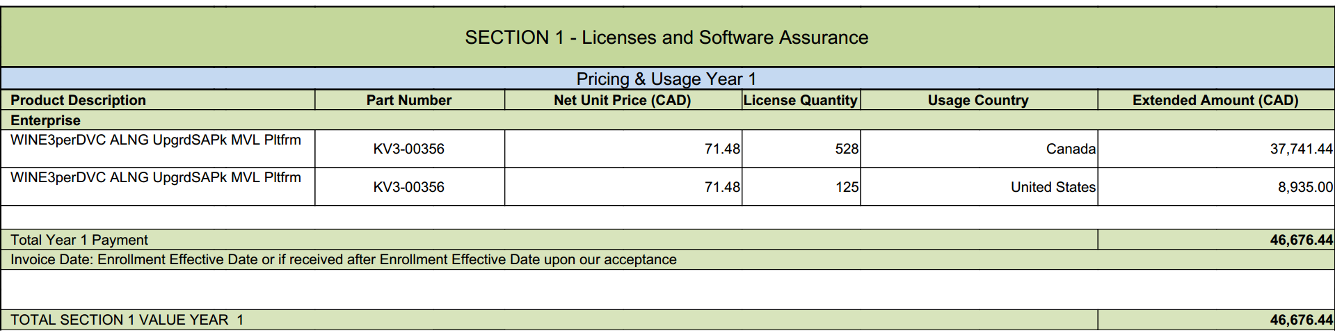 Data required in this step can be found in CPS table under the header “Section 1 – License and Software Assurance” as shown below. Products for every year should be added (please inspect the note regarding auto auto-populate feature below).