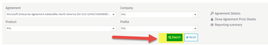Profile filter is available only if the selected agreement has product profiles created. If there are no product profiles in the selected agreement, this drop-down will be hidden.