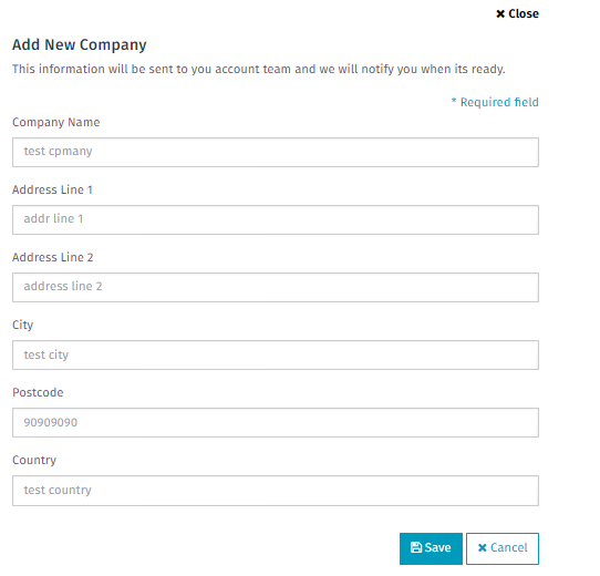 Location is the extension of the company which should exist in backend systems. If it does not exist then both “Company” and “extended Location” can be added in the form below. It is advised to have permissions for all companies in the address tree relevant to the agreement being set up. Only one location can be added per company.