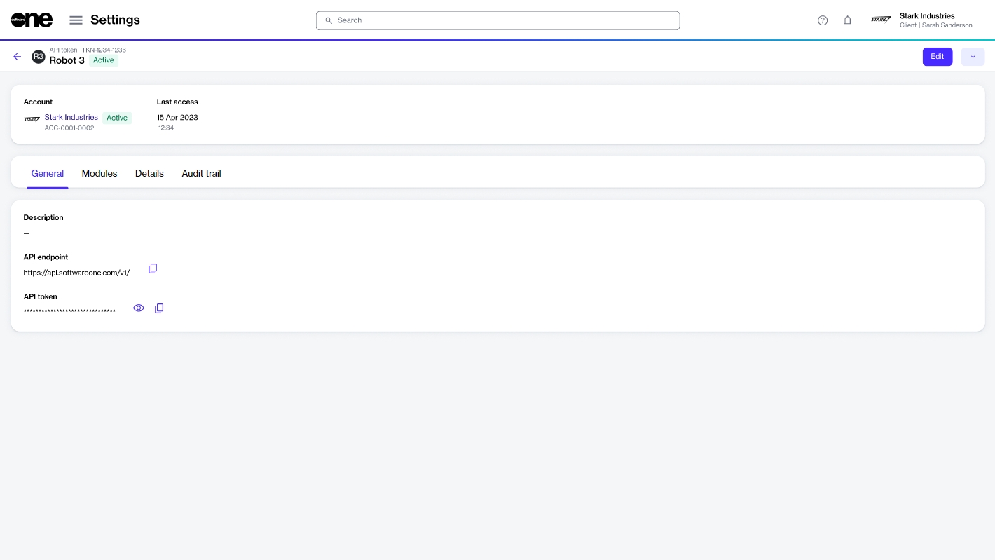 You also have action links that allow you to enable, disable, or delete the token. Additionally, you can edit the token's details.