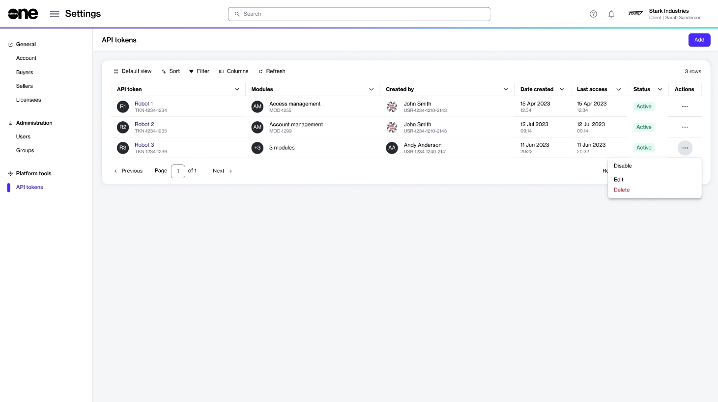 You can easily disable an API token temporarily and enable it again when required through the platform. Before disabling a token, note the following points: