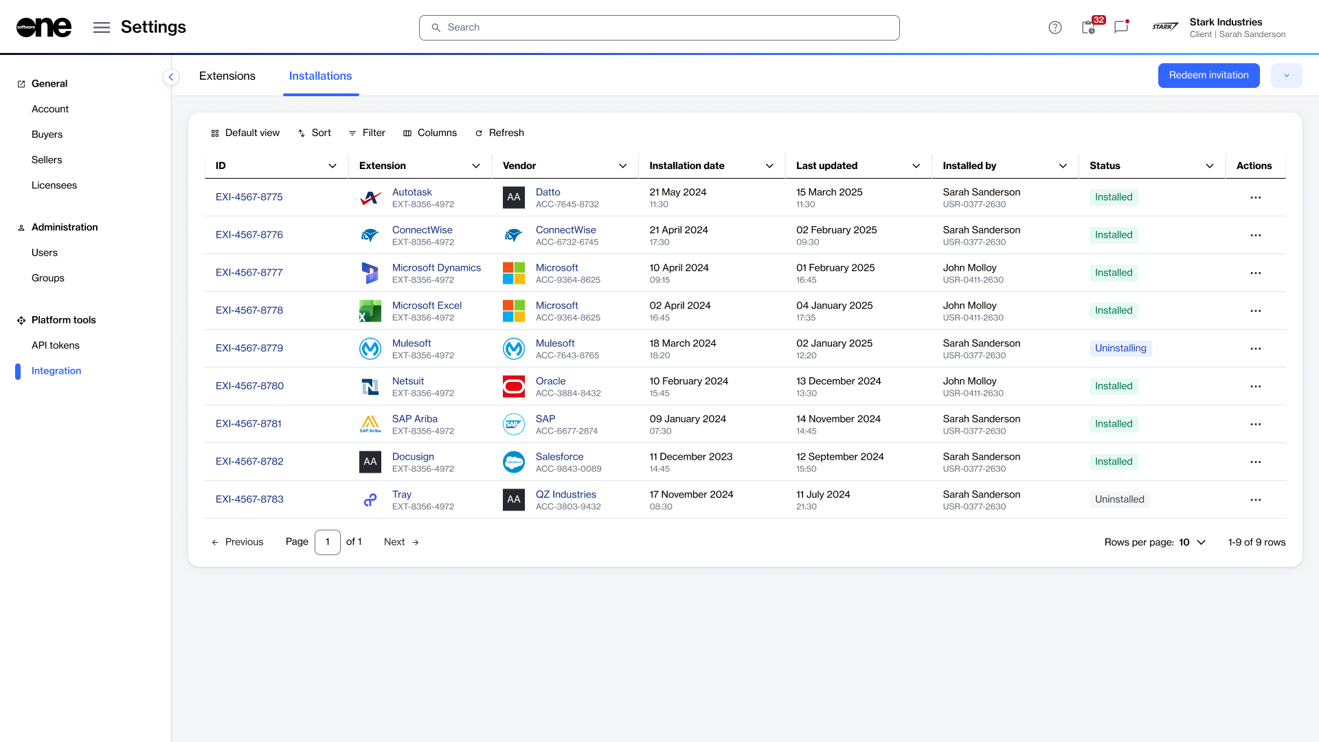 After an extension has been installed, it can appear in several predefined locations within the platform. Depending on the extension, it may appear in the main navigation menu, relevant modules, or details pages.&#x20;
