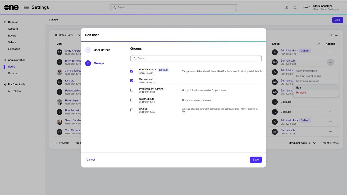 Select the actions icon (•••) and choose Edit to start the Edit user wizard.