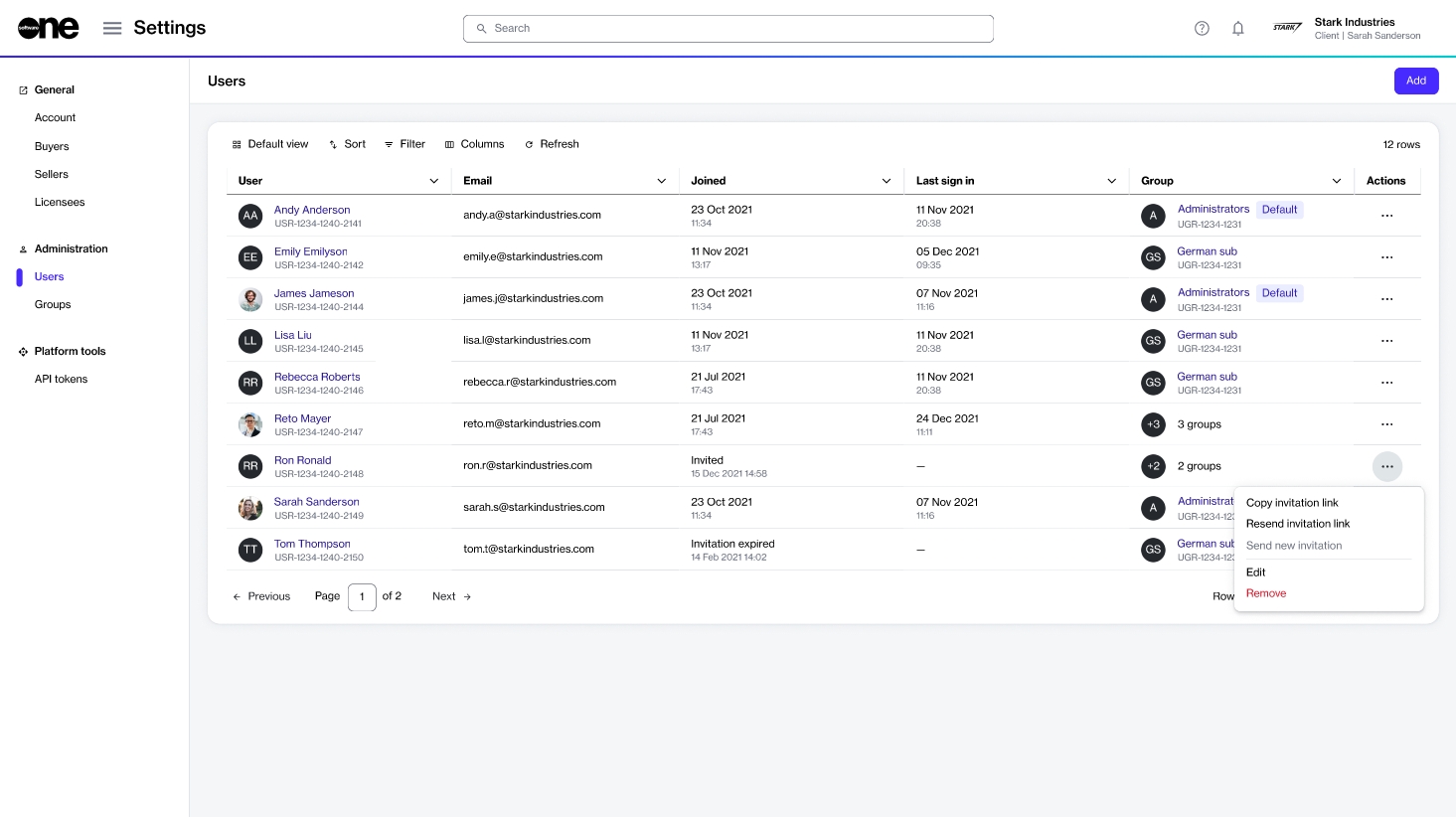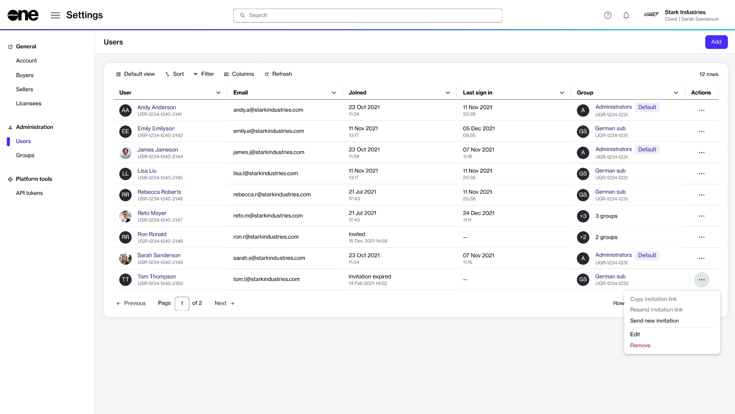 Account administrators can create a new invitation and resend it to the individual. The option to send a new invitation is only enabled for individuals with the Invitation expired status on the platform.
